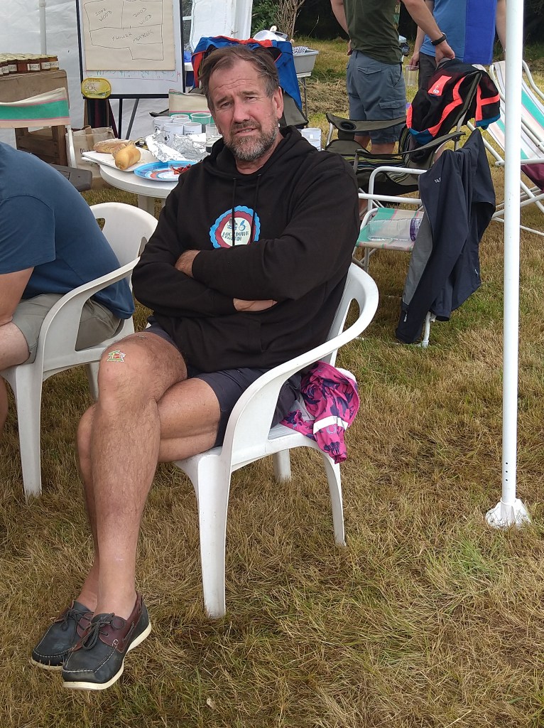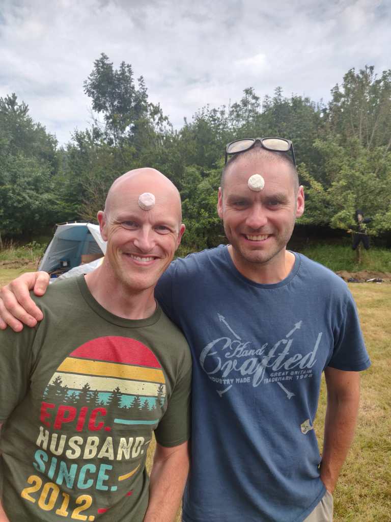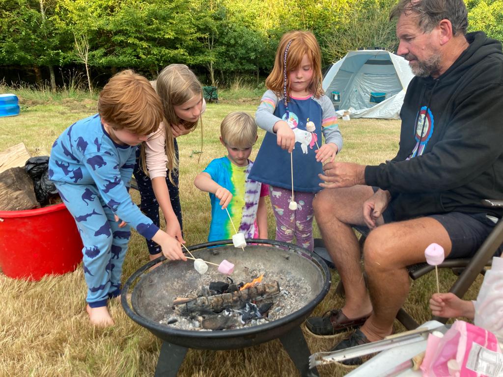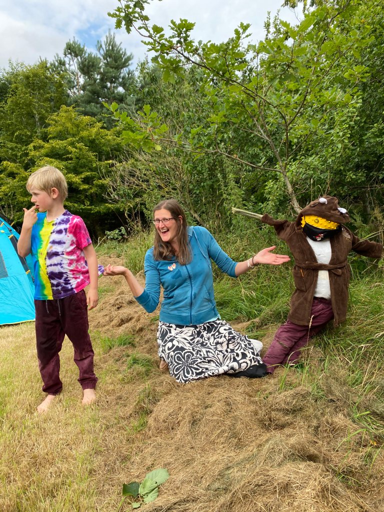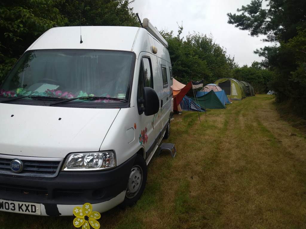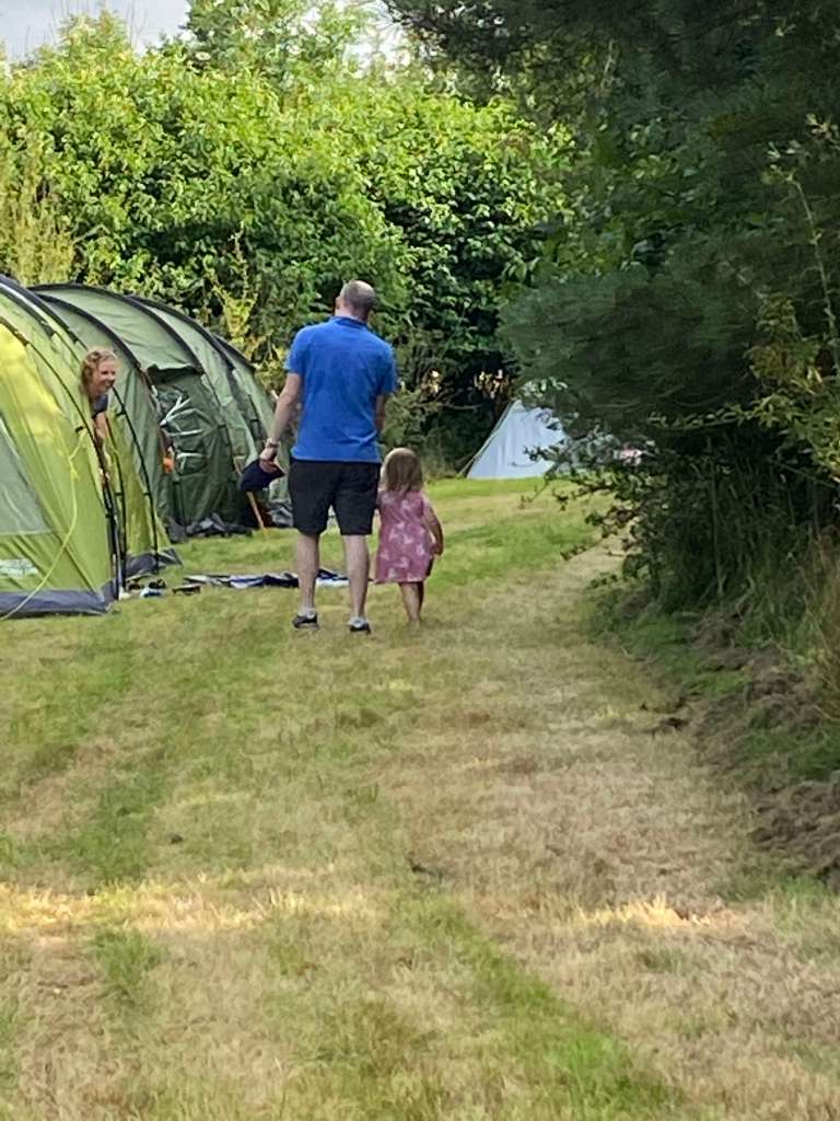 Afternoon tea approached so Evelyn, as judge of the cake competition, bravely sampled each entry declaring Ravi’s to be the most moist, tasty and beautifully decorated. The day concluded with everyone gathered round a fire pit where Evelyn’s sons Alex and Stuart entertained us with their guitars and a medley of songs rehearsed and ‘not so’ – everone joining in to fill in the missing lyrics. Sadly it all had to end. Sunday morning dawned wet and drizzly. Isobel created a very popular beauty parlour for the kids giving the parents space to strike their soggy tents. The girls were returned to their parents looking like they had just arrived back from the Glastonbury Festival covered in tattoos, sparkles and rainbow crayon.