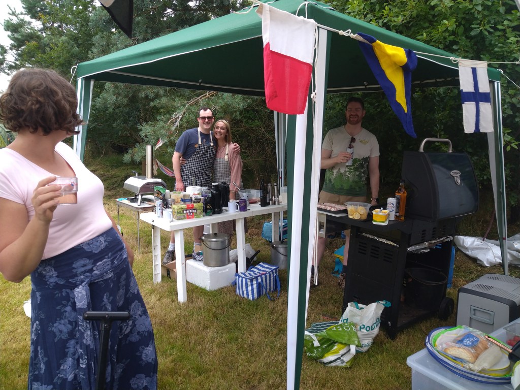For the 2021 games Matt and Evelyn very generously hosted a camping weekend at Gimswood. This was a wonderful opportunity for us all to revisit the woodland created from scratch by Gill with the help of friends and family from an agricultural field. The wood is now maturing and provides a peaceful haven for visitors and wildlife.