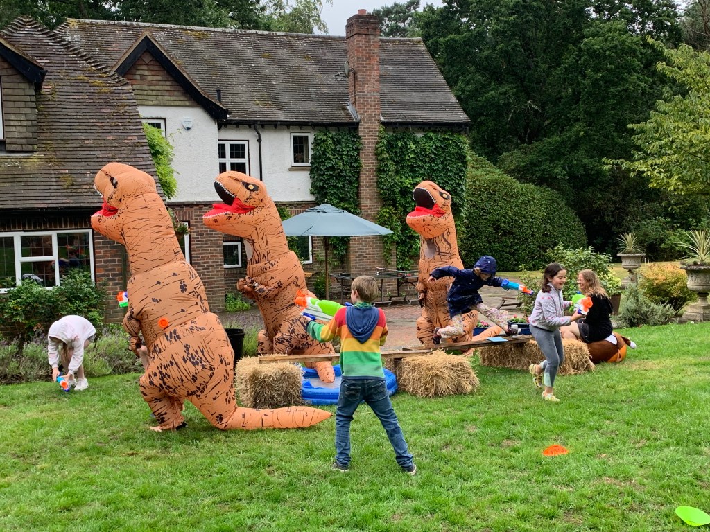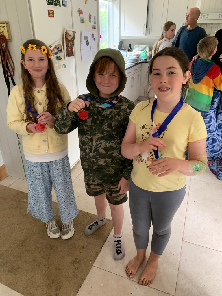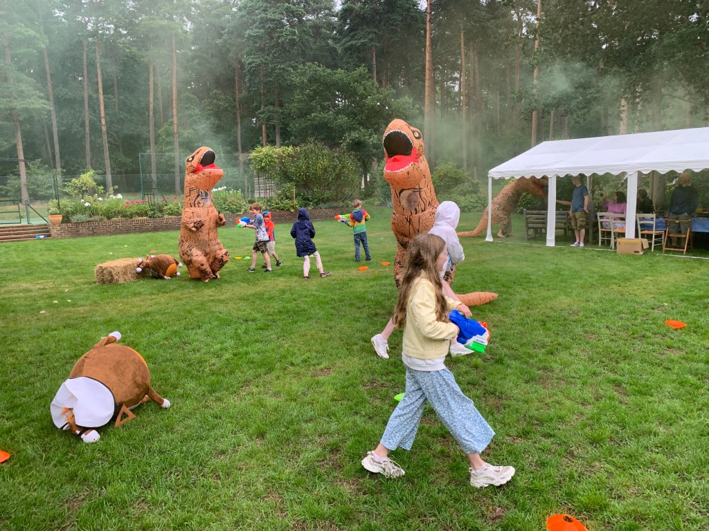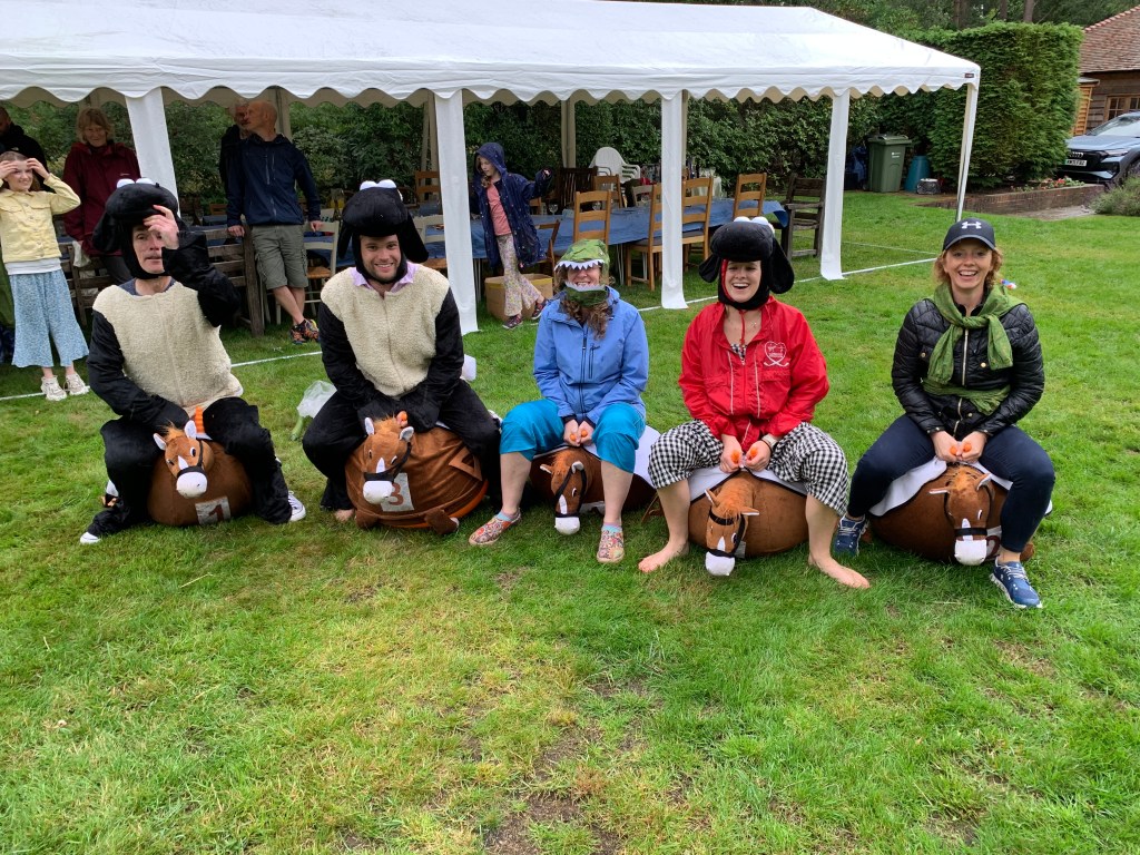 A soggy day out but the weather did not dampen this year’s shenanigans. There were teepees constructed in the pine forest, sheep jumps over hay bales on space hoppers, a water fight with raging dinosaurs and intrepid balancing blindfolded across a treacherous water hazaard.
